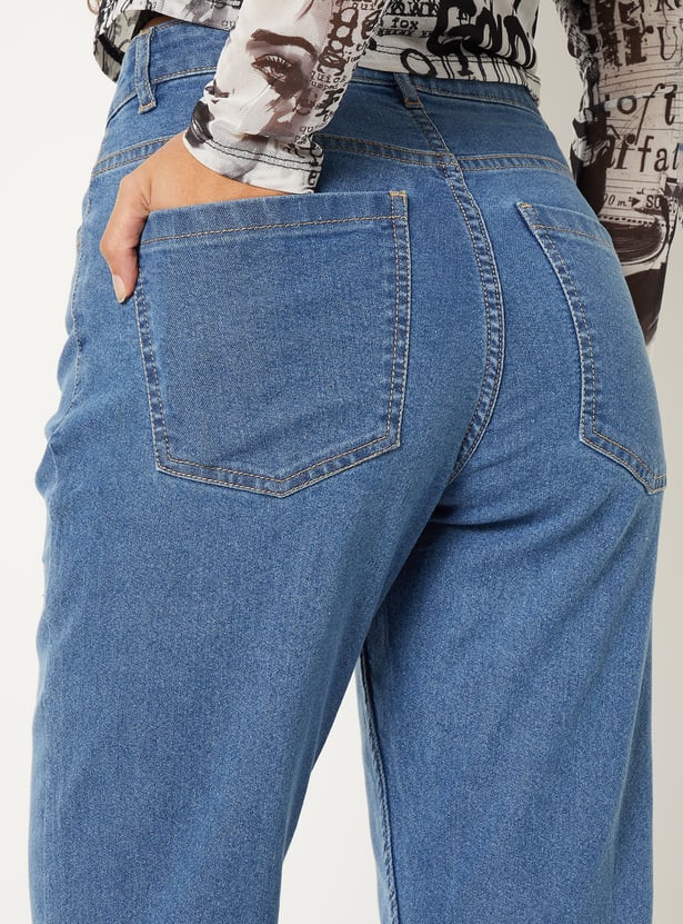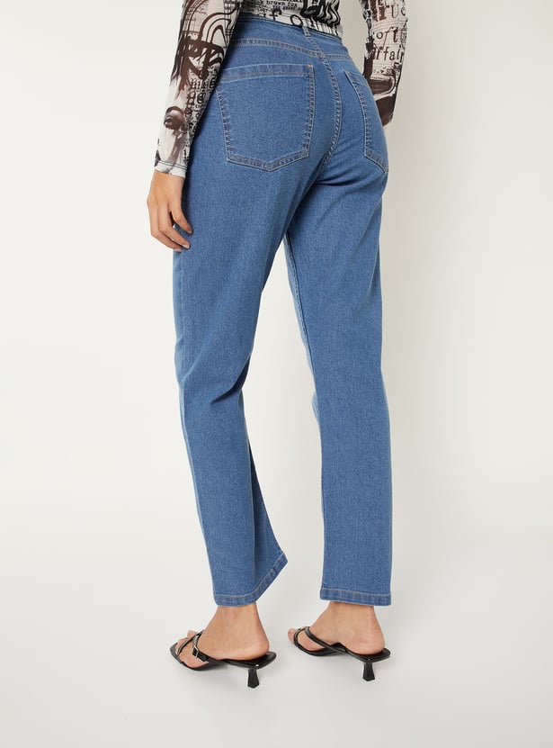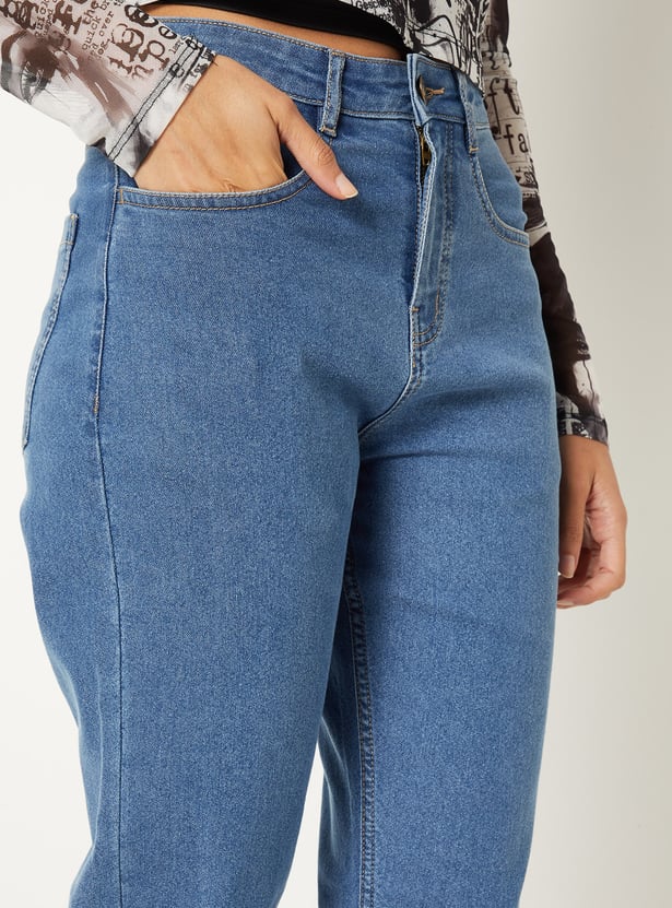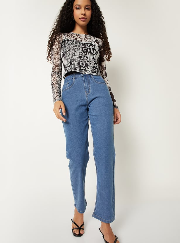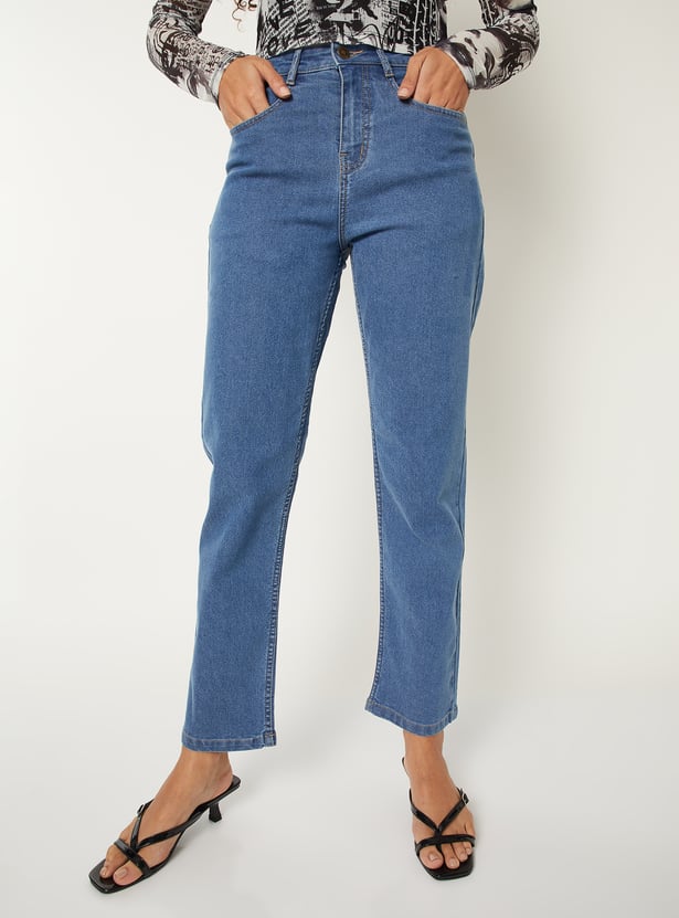 Add a timeless classic to your denim collection with these washed high-rise slim straight jeans. Featuring a button closure, belt loops, and functional pockets, they offer a flattering fit with everyday versatility.