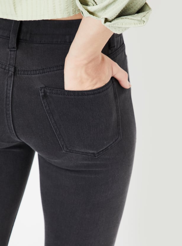 Elevate your denim game with this pair of jeggings. The washed finish adds a lived-in, effortlessly cool vibe. With a classic skinny cut, this pair has a belt loop waist and back patch pockets.