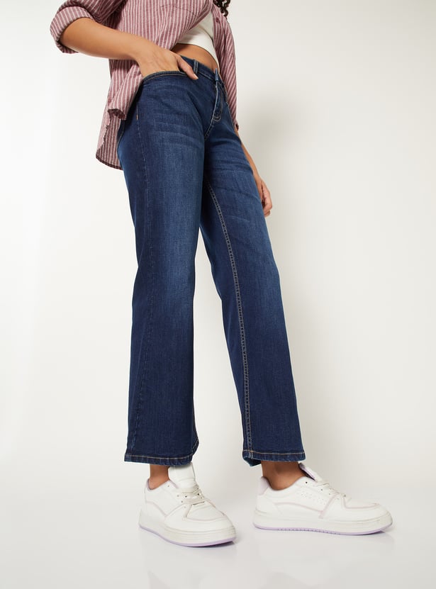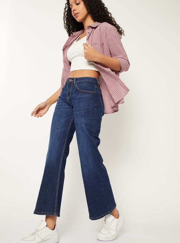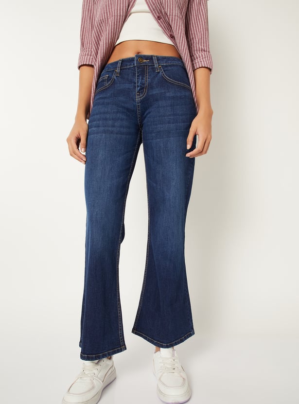 Women Washed Kick Flare Jeans