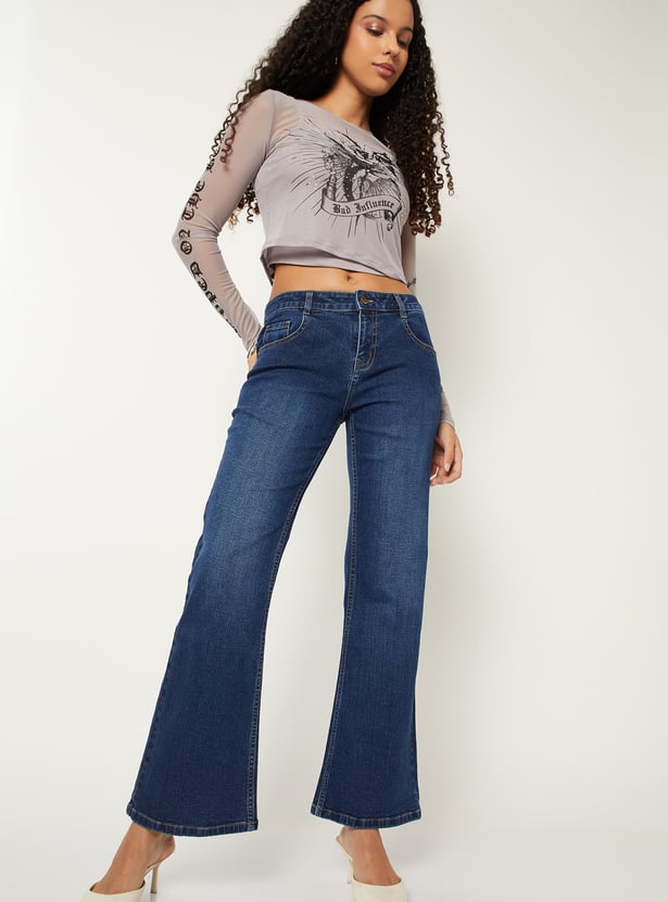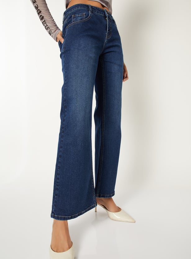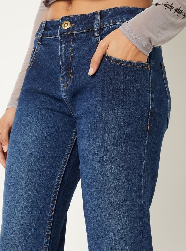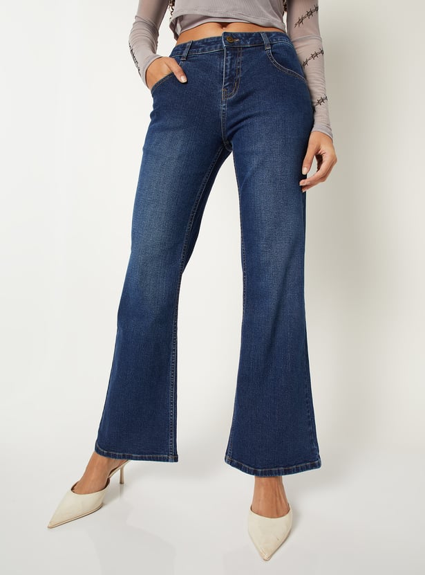 Women Washed Kick Flare Jeans