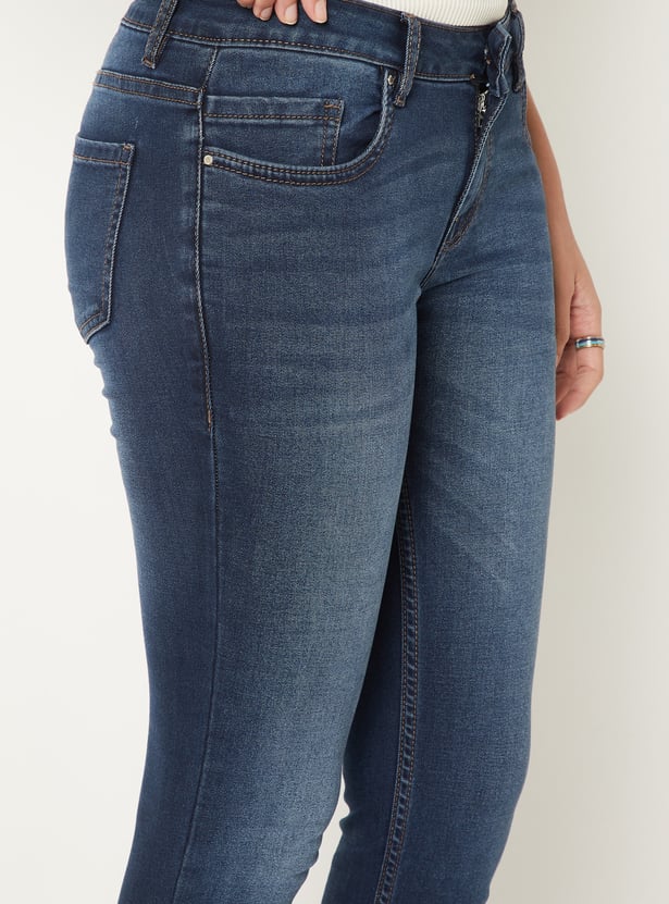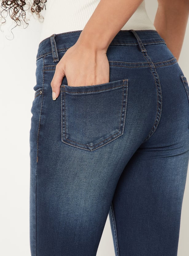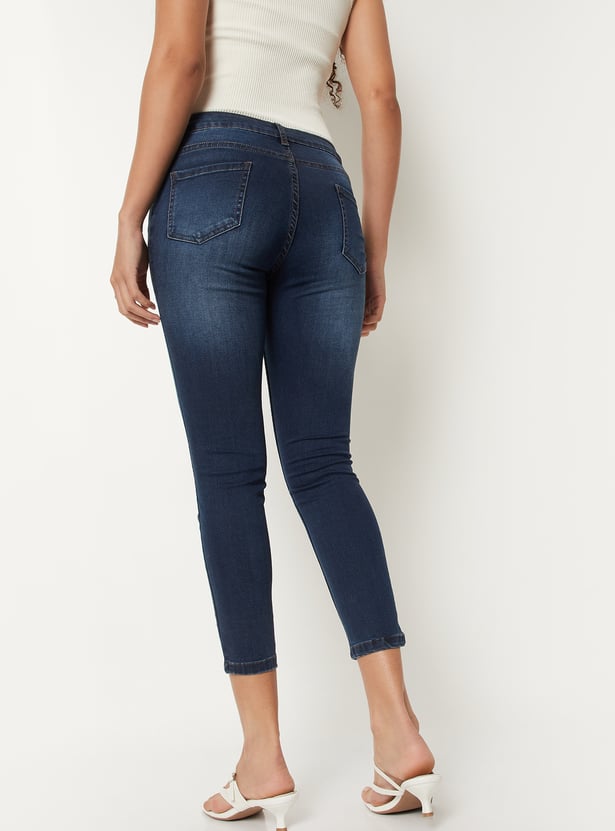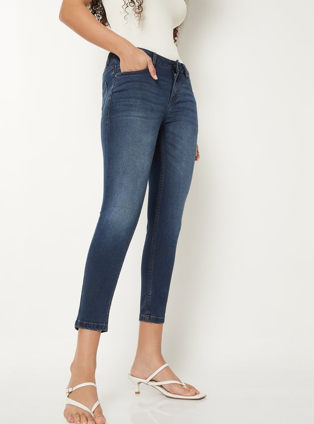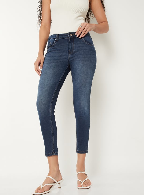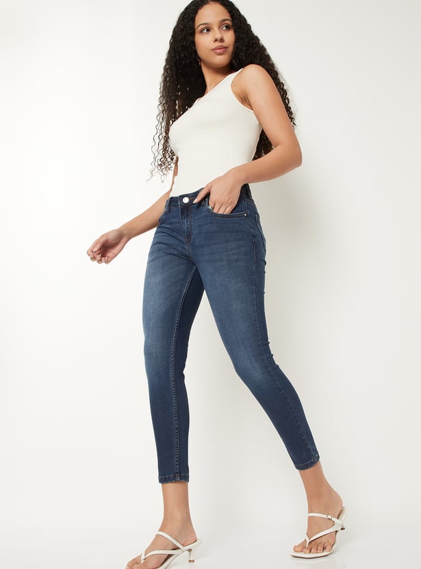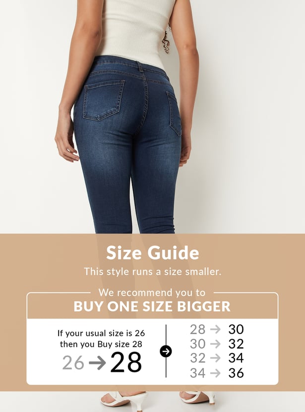 Upgrade your denim collection with these washed skinny fit crop jeans. Designed with a secure button closure, functional belt loops, and a flattering mid-rise waist, they offer both style and comfort.
