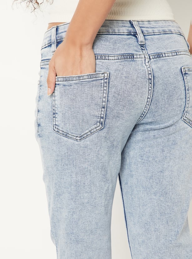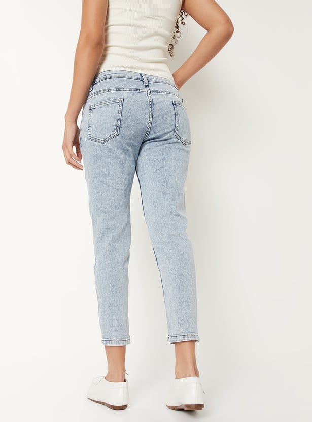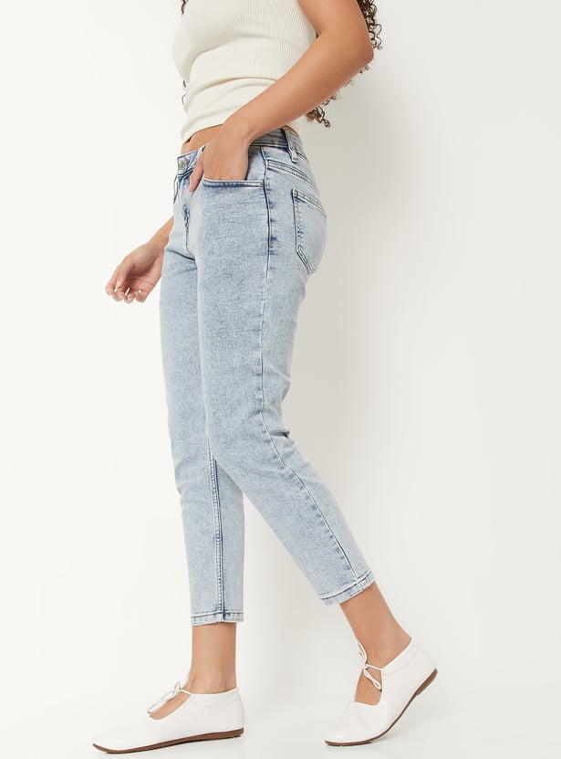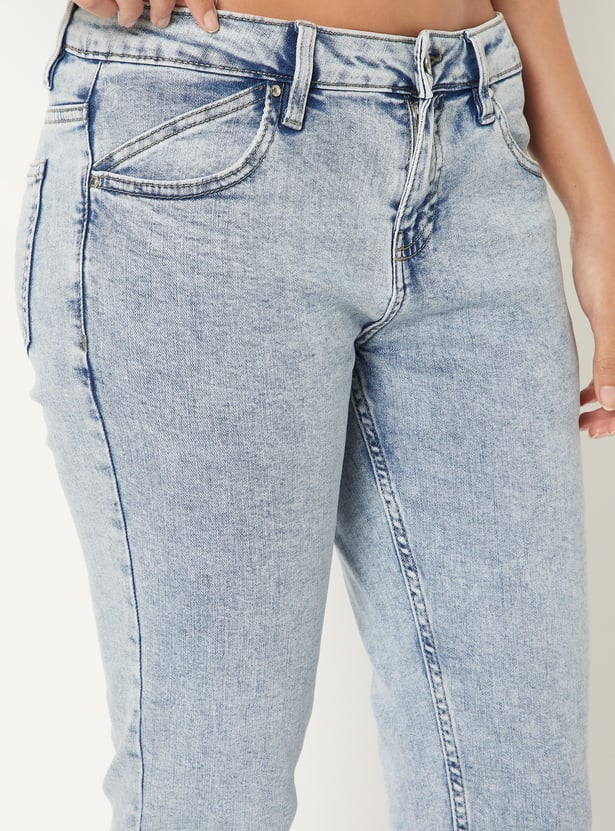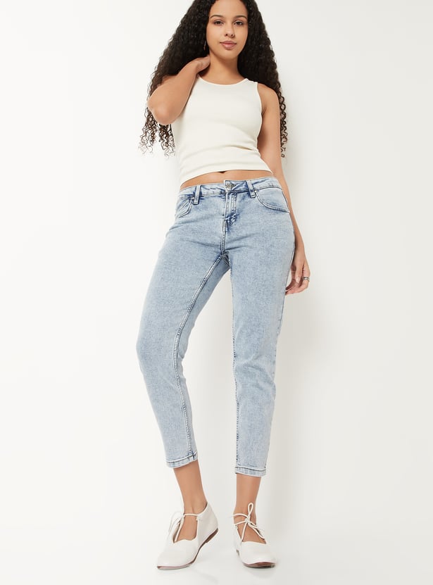 Upgrade your denim collection with these washed skinny fit crop jeans. Designed with a secure button closure, functional belt loops, and a flattering mid-rise waist, they offer both style and comfort.