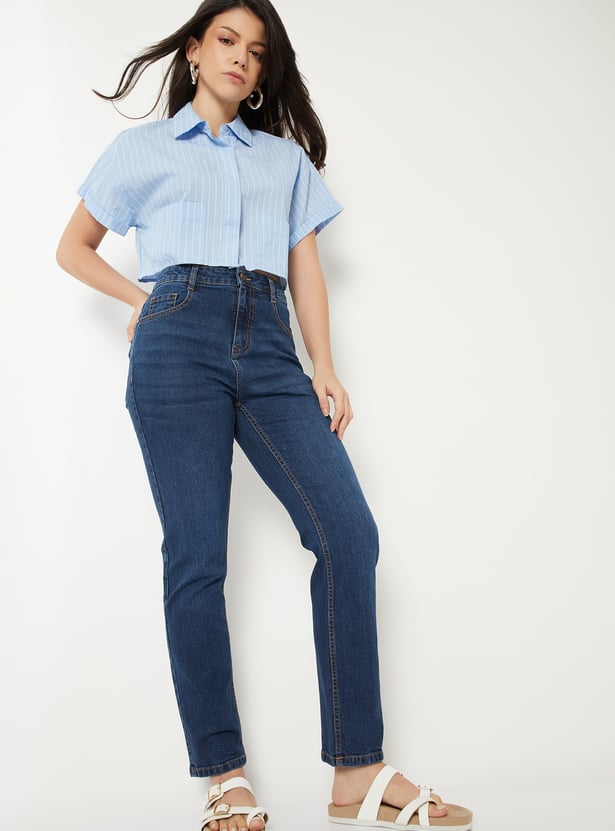 Women Washed Slim Straight Fit Jeans