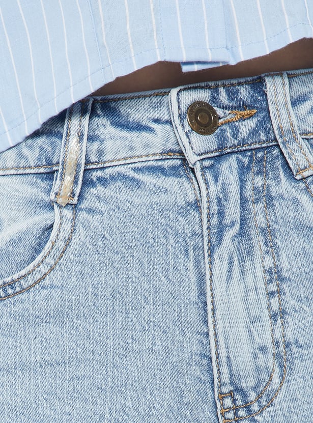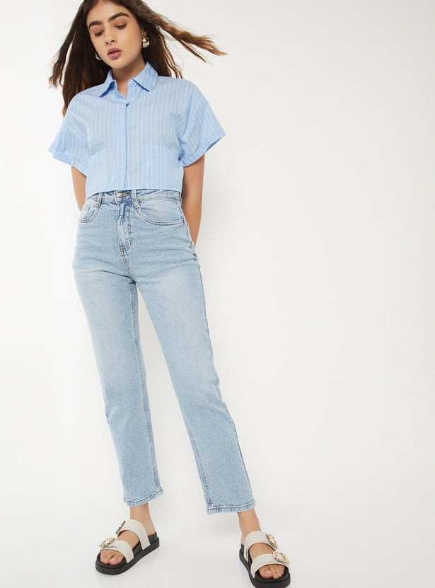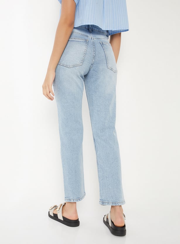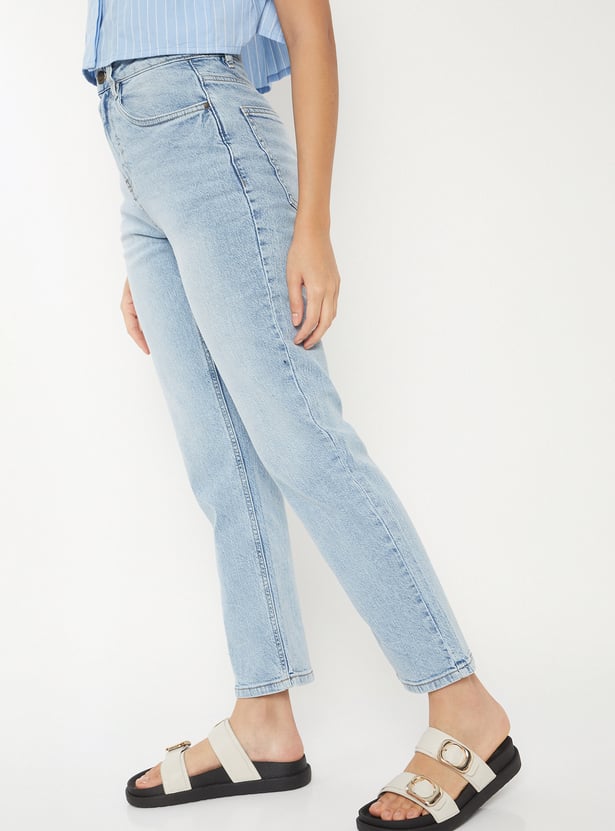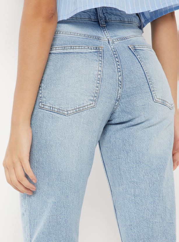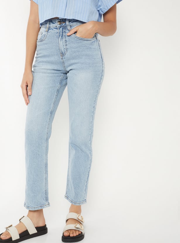 Upgrade your denim collection with this washed slim straight jeans designed for everyday wear. Featuring a button closure, zip fastening, functional pockets, and belt loops for classic style.