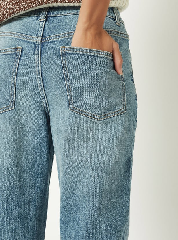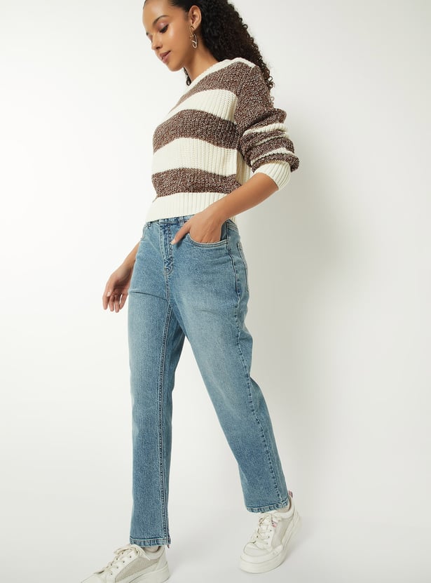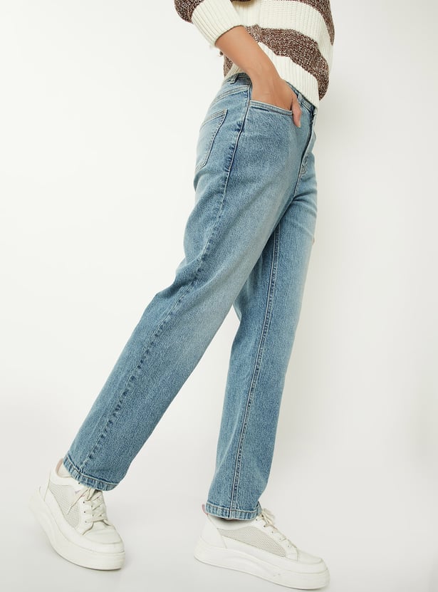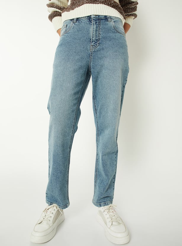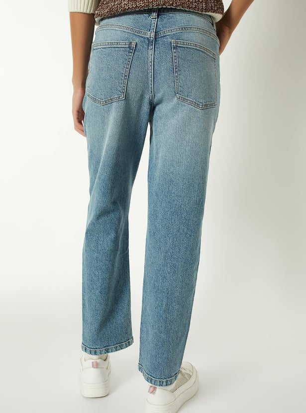 Women Washed Slim Straight Jeans