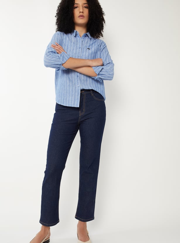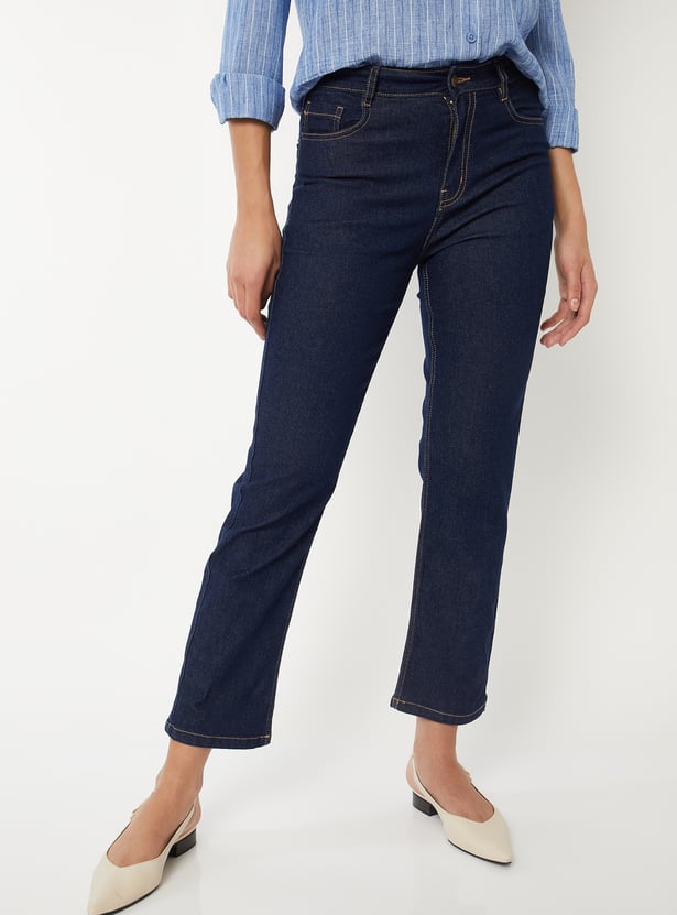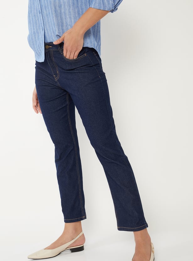 Women Washed Slim Straight Jeans