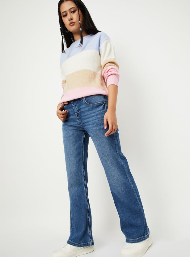Women Washed Wide Leg Jeans