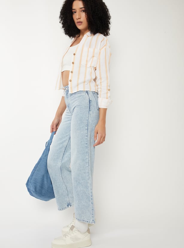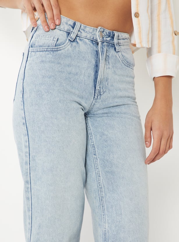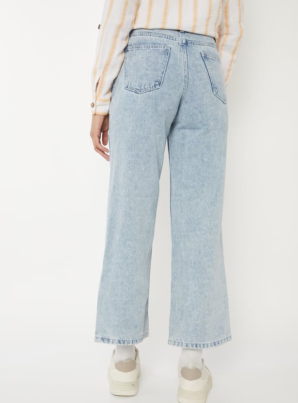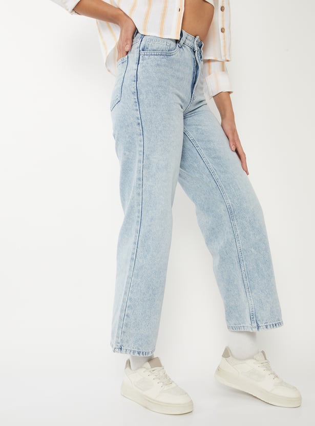 Women Washed Wide Leg Jeans