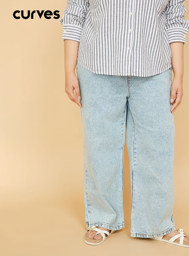Women Washed Wide Leg Jeans
