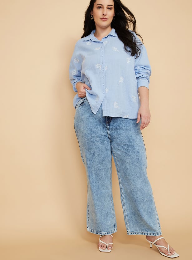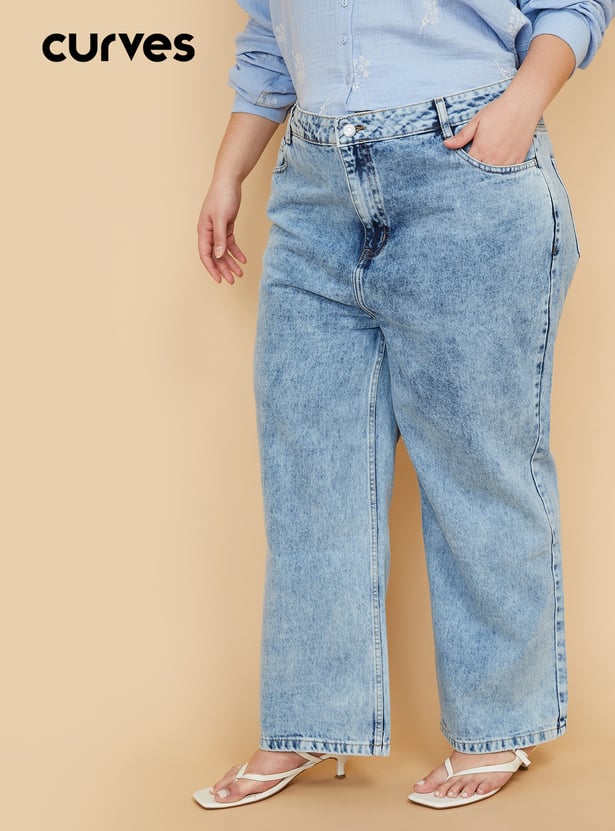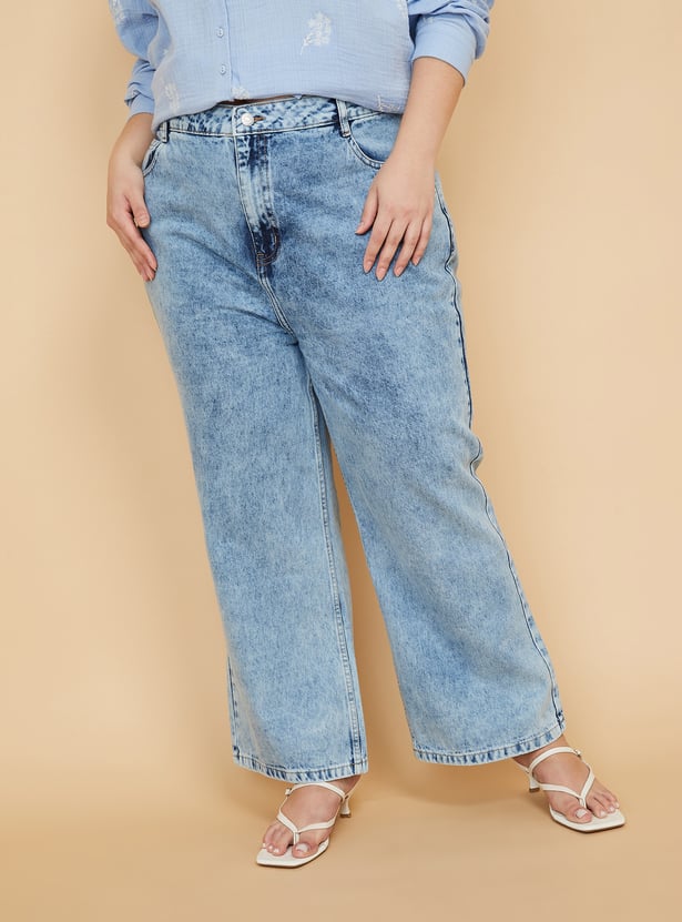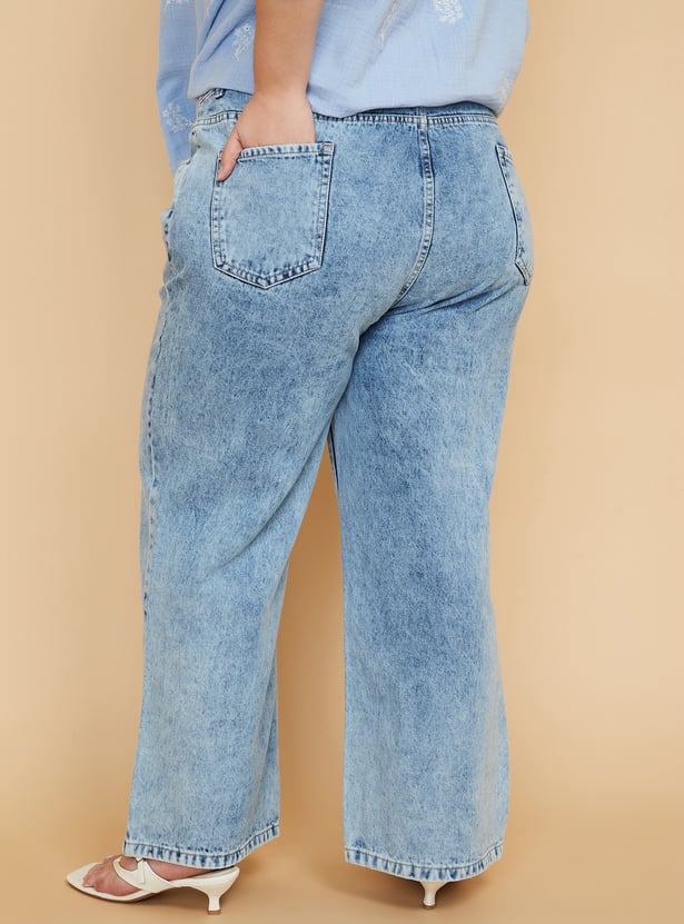 Women Washed Wide Leg Jeans