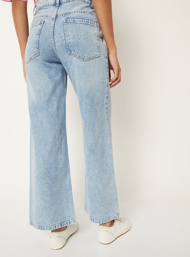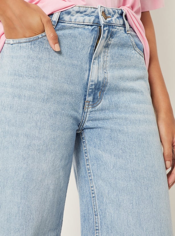 Women Washed Wide Leg Jeans