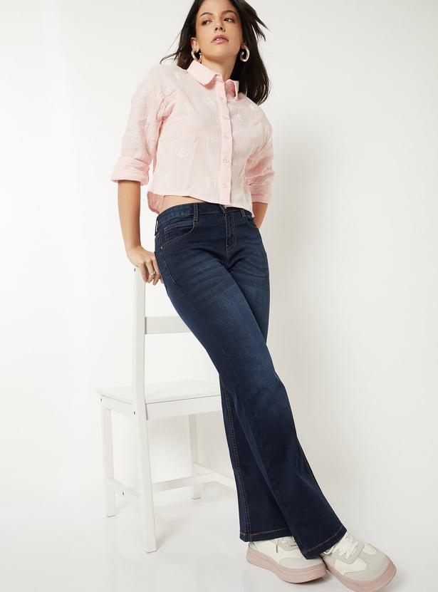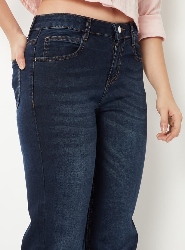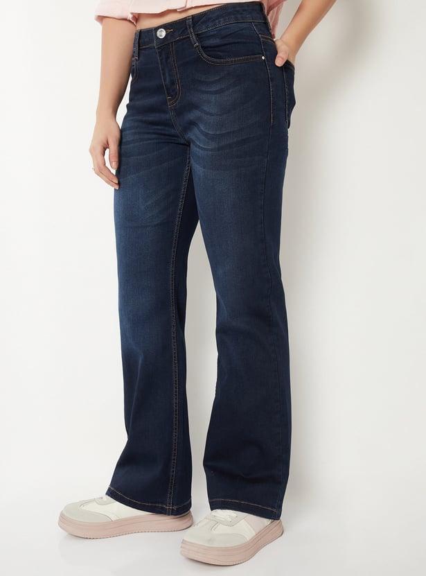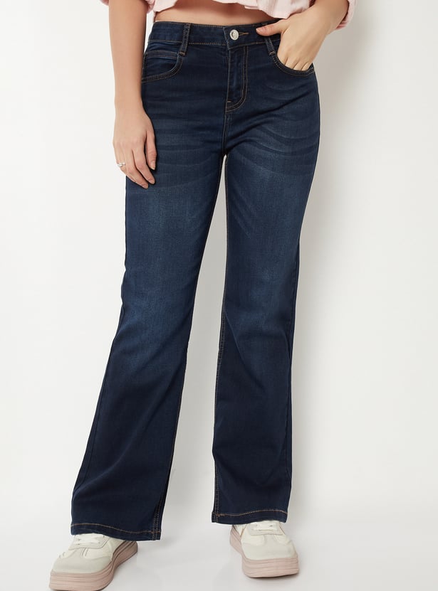 Step out in effortless style with these jeans. Featuring a washed finish with subtle whiskering, belt loop waist, and classic 5-pocket styling, they offer both comfort and timeless appeal. The kick flare silhouette creates a flattering shape that balances structure with a relaxed feel for versatile wear.