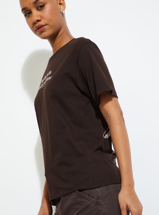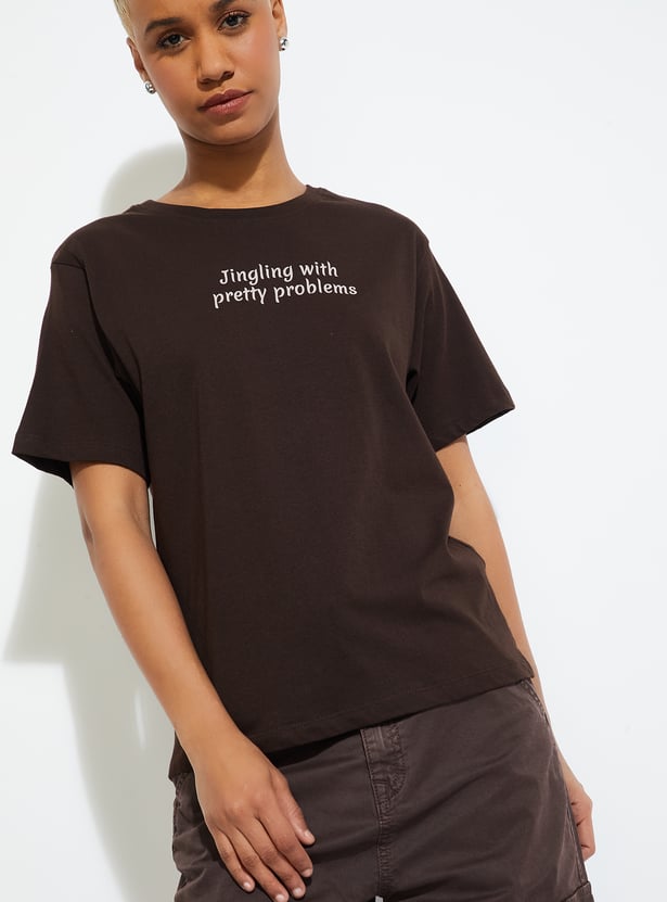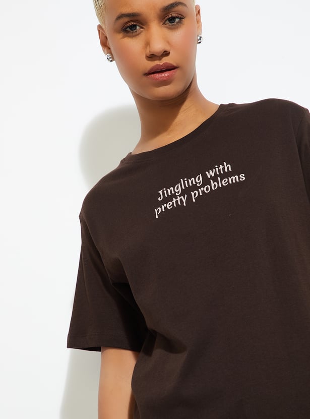 Effortlessly casual, this printed relaxed fit T-shirt features a classic round neckline and easy half sleeves. The relaxed silhouette ensures comfort while the print adds personality, making it a versatile piece for everyday wear.