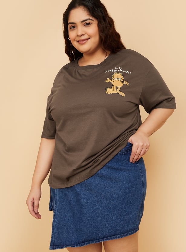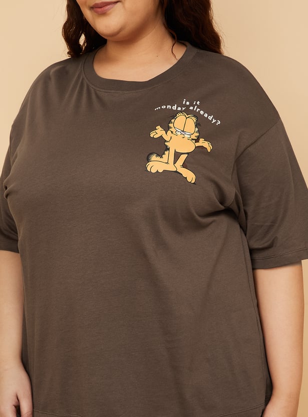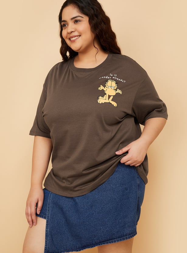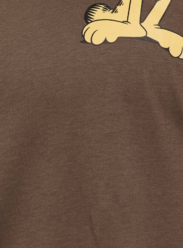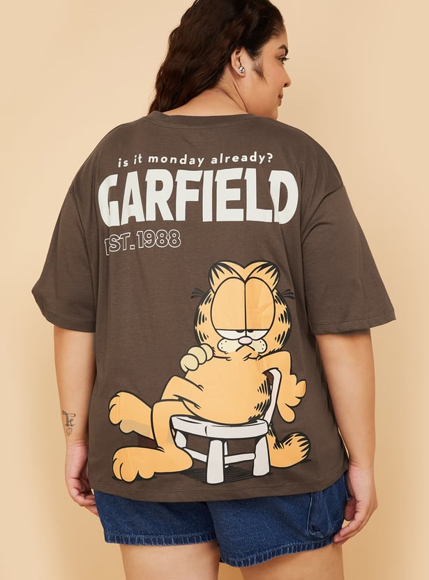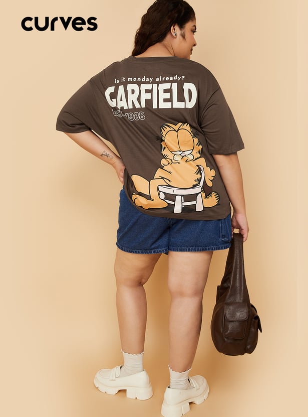 Add a playful twist to your casual wardrobe with this Garfield print oversized T-shirt, designed with a round neck and half sleeves for laid-back comfort. Model Size :
