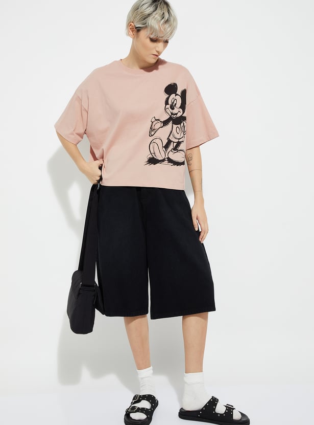 Update your casual staples with this Mickey Mouse printed boxy fit T-shirt featuring a classic round neck and comfortable half sleeves. Relaxed and playful, it’s perfect for everyday wear.