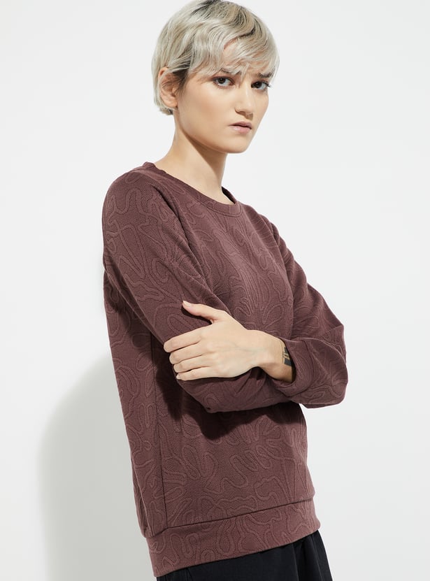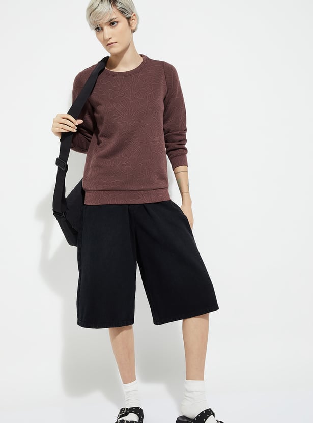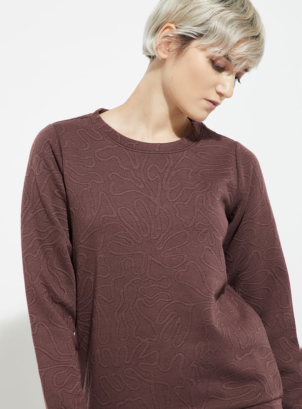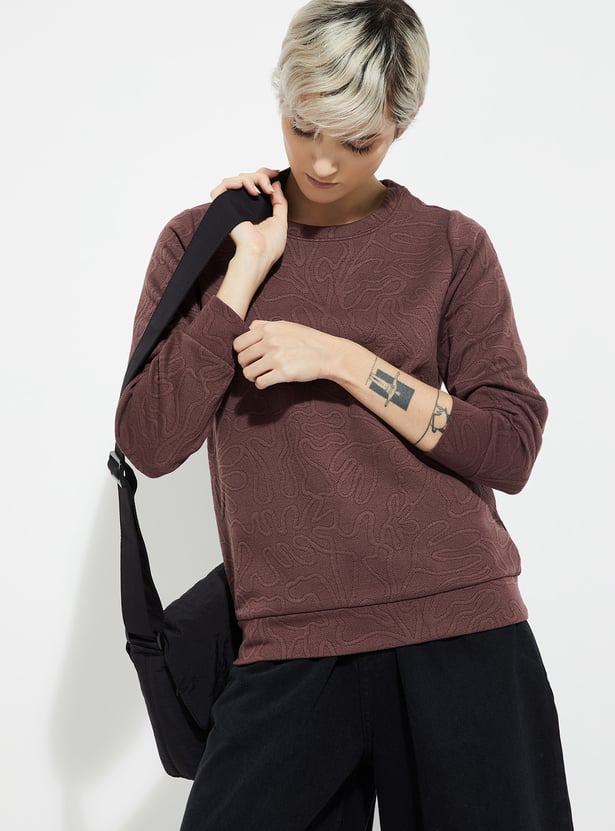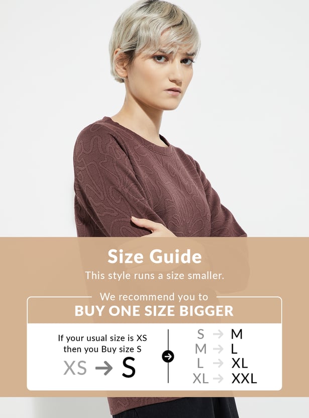 Refresh your cozy essentials with this patterned sweatshirt featuring a classic round neck, full sleeves, and a comfortable ribbed hem. Soft and stylish, it’s perfect for everyday wear. Model Size :