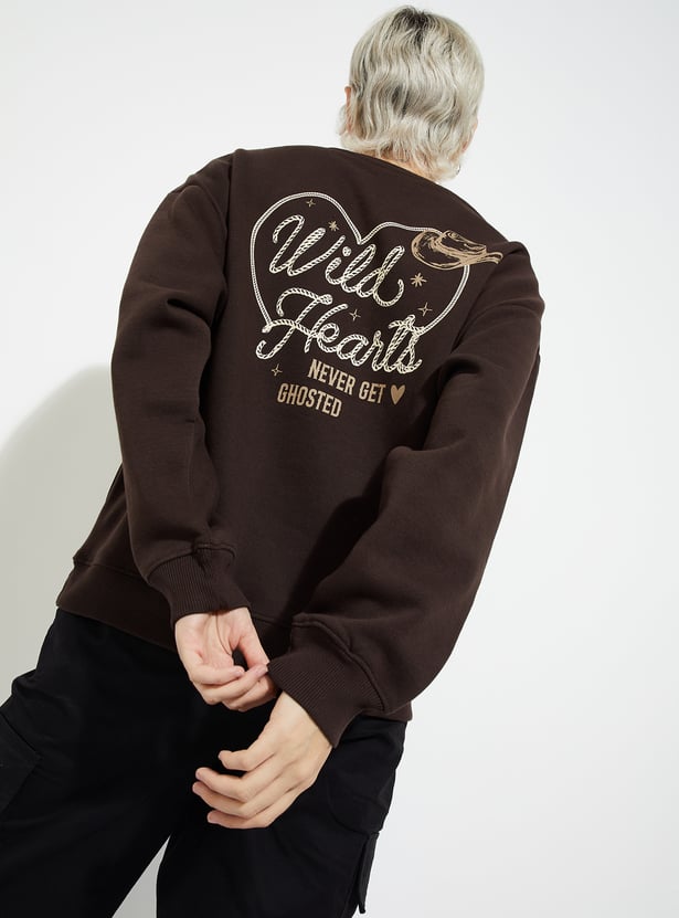 Stay cosy and stylish with this printed oversized sweatshirt, designed with a classic round neck and full sleeves for a relaxed, laid-back vibe. Model Size :