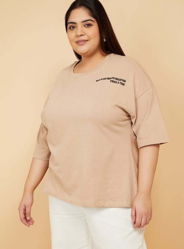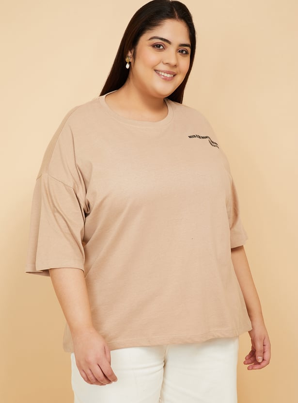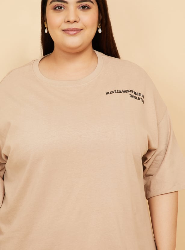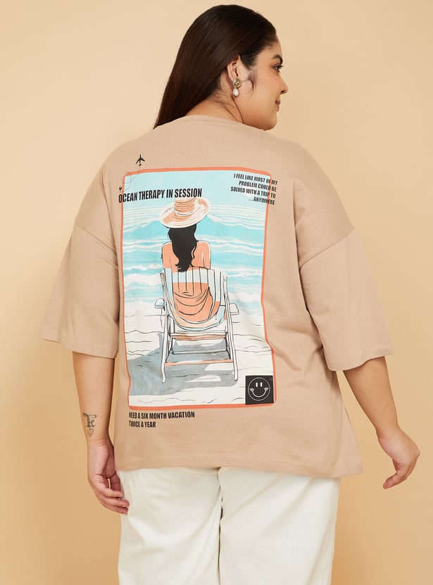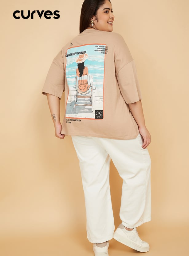 Make a bold casual statement with this printed oversized T-shirt, featuring a classic round neck and half sleeves for all-day comfort. Model Size :