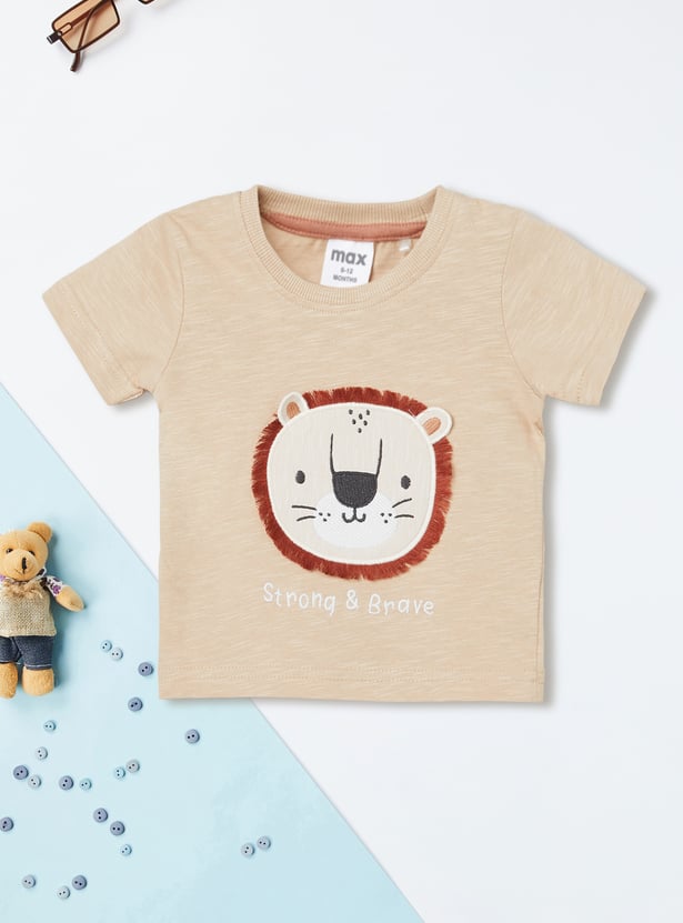 Playful and coordinated, this applique shorts set brings together comfort and style. The T-shirt features a classic crew neck and half sleeves, while the textured shorts with an elasticated waist and kangaroo pocket add a sporty, vibrant touch.