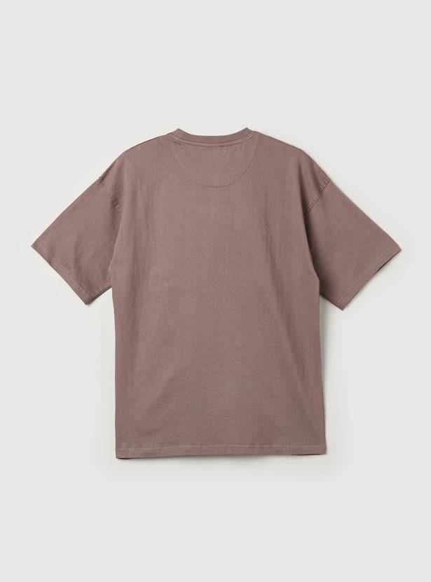 Step in comfort with this embossed T-shirt, featuring graphic print that showcase your style. With a crew neck and half sleeves, it's the perfect mix of comfort and flair.