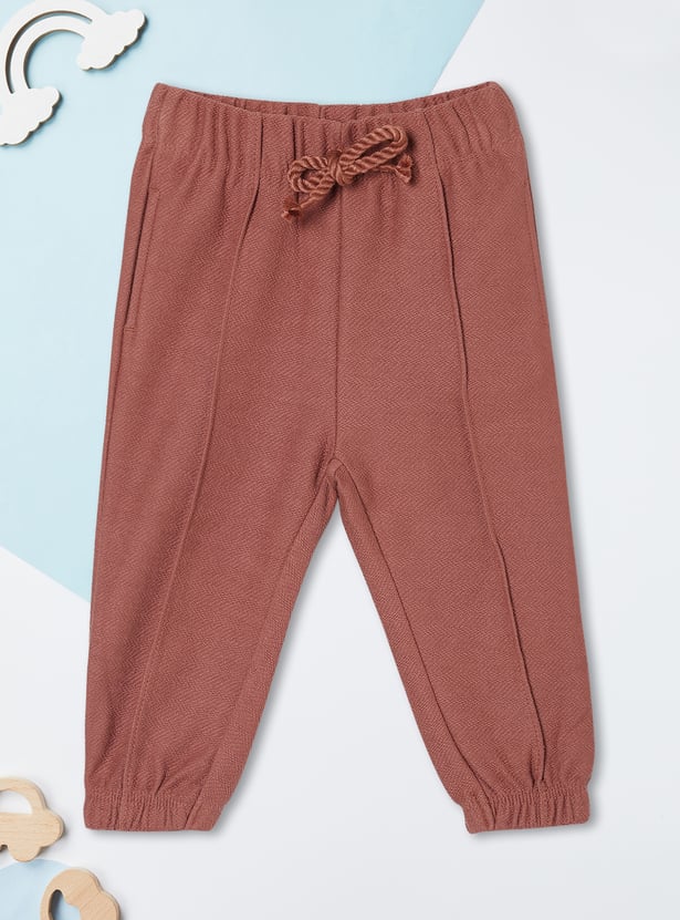 Stay cozy and stylish with these knit joggers. Featuring a comfortable drawstring closure, they're perfect for lounging or casual outings.