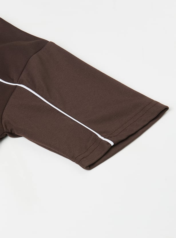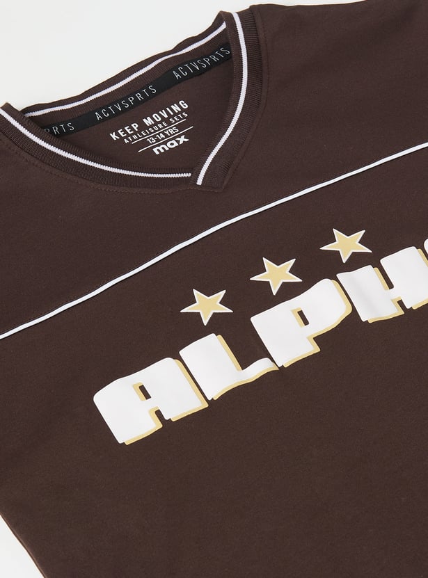 Make everyday dressing effortless with this printed shorts set featuring a comfy V-neck T-shirt with half sleeves, paired with easy-fit shorts secured with a drawstring closure.