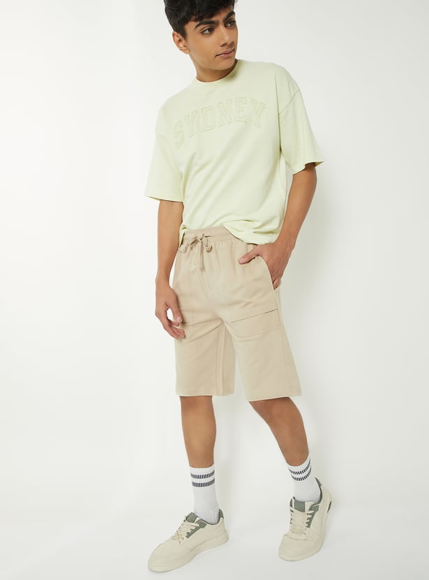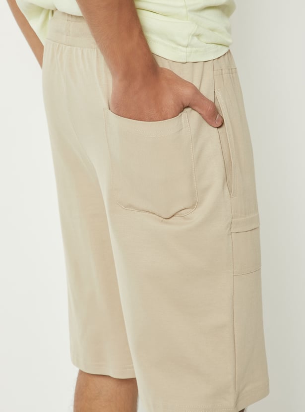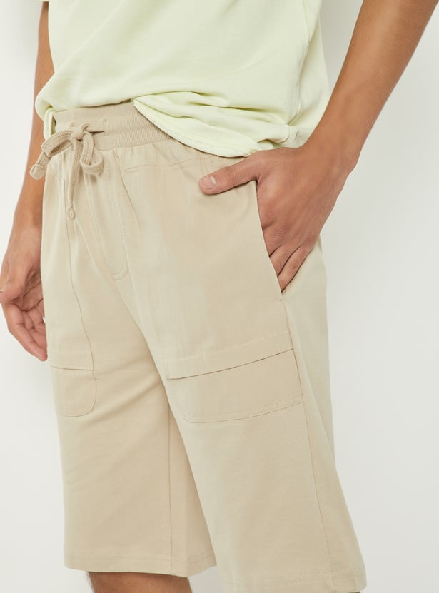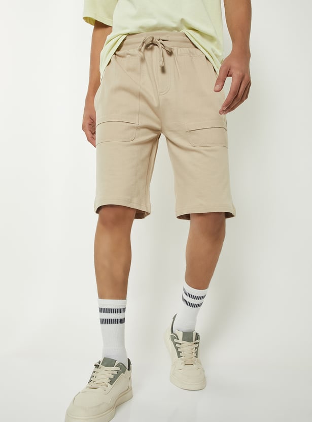 Built for comfort and made to move, these solid cargo shorts feature a mid-rise, drawstring closure and spacious pockets—ideal for laid-back days or outdoor adventures.
