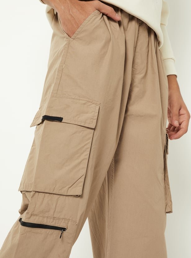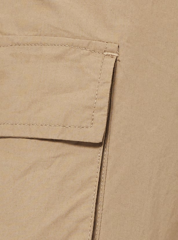 Stay on-trend and comfortable with these solid cargo trousers. Designed with a drawstring waist and adjustable drawcord at the hem, they offer a customizable fit and a relaxed silhouette. Utility-inspired pockets add both function and style for everyday wear.