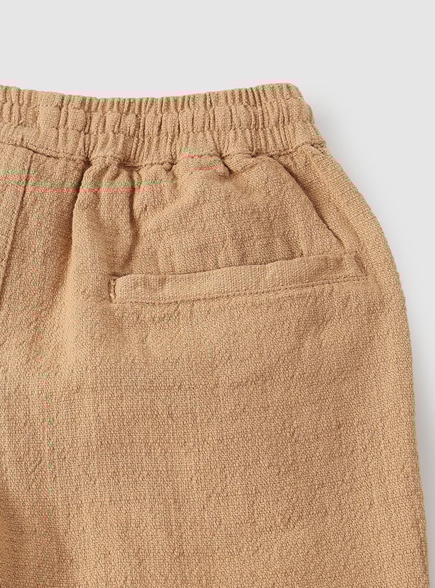 Designed for all-day wear and play, this pair of trousers provides comfort and style in every step. It features a drawstring waist, cross pockets, and back welt pockets.