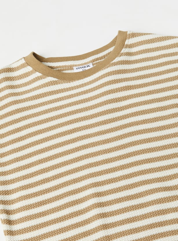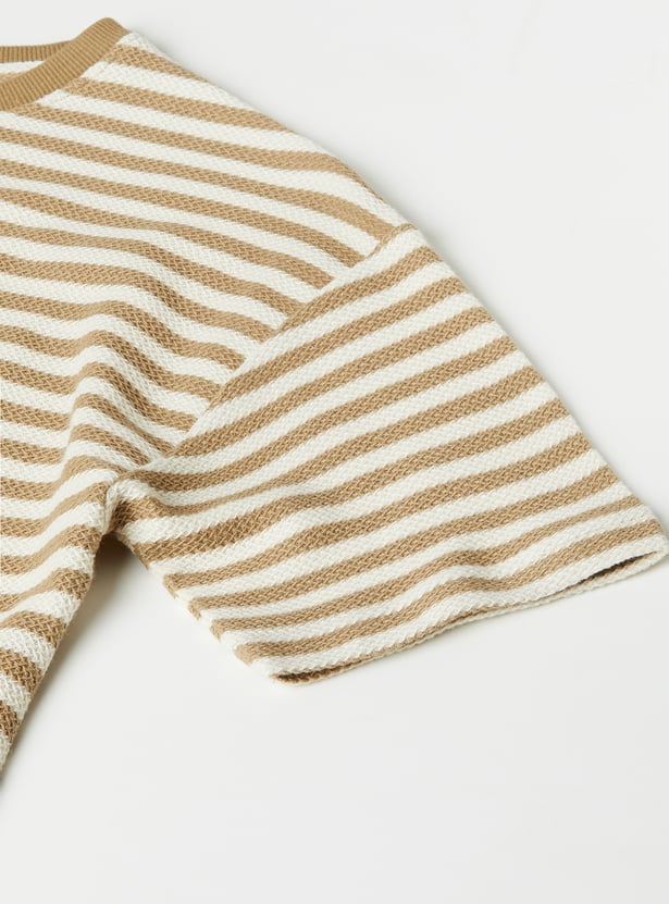 Get your little one ready for everyday adventures with this casual striped knit T-shirt. Designed with a classic round neck and half sleeves, it offers all‑day comfort with effortless style.