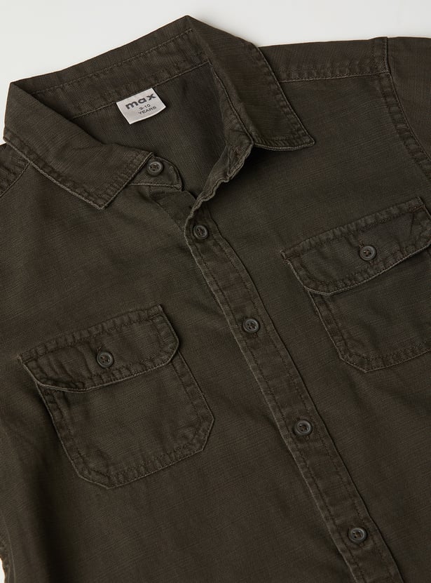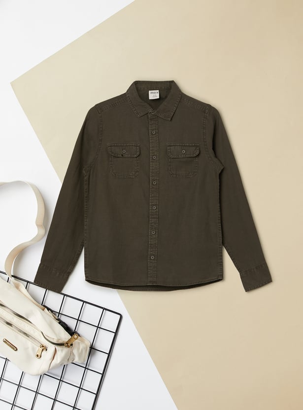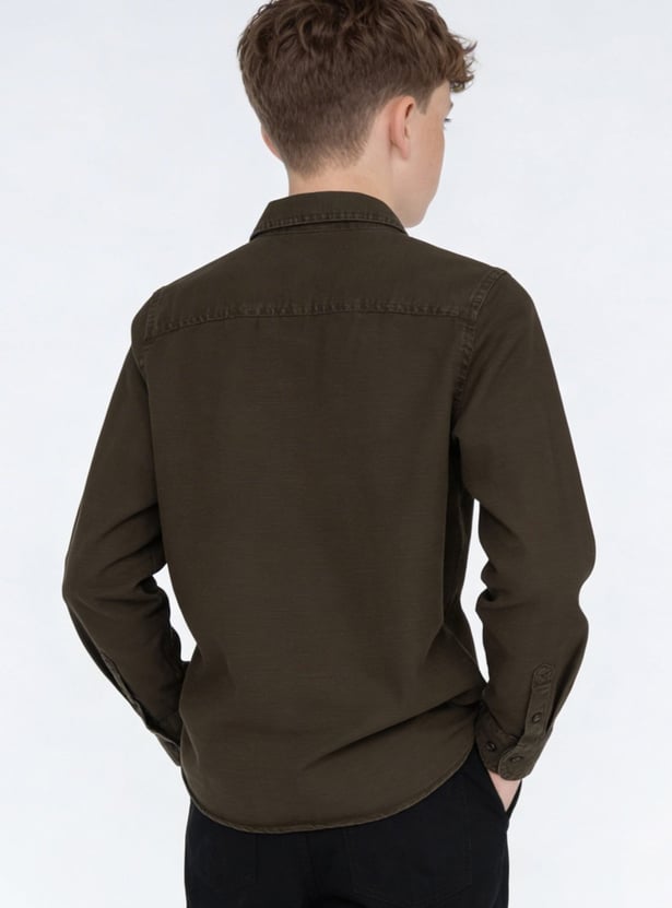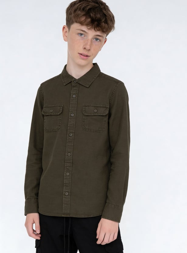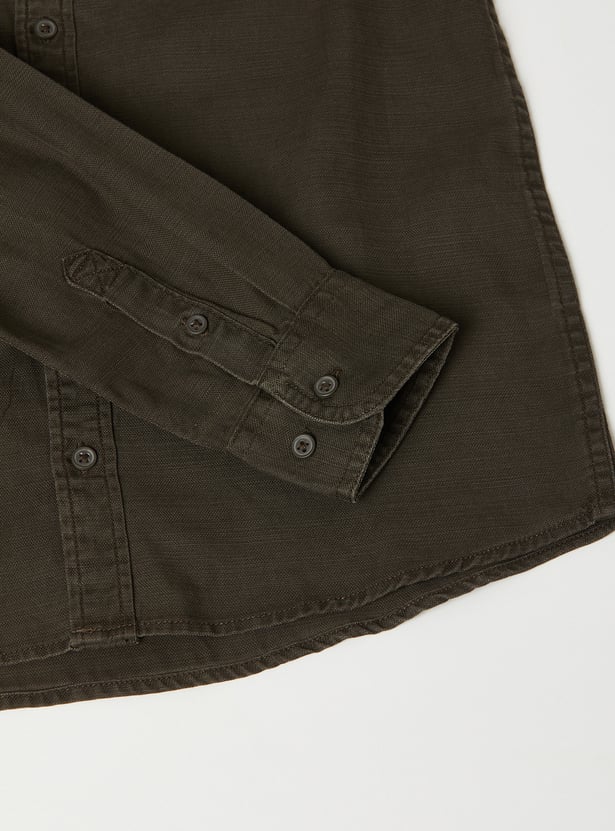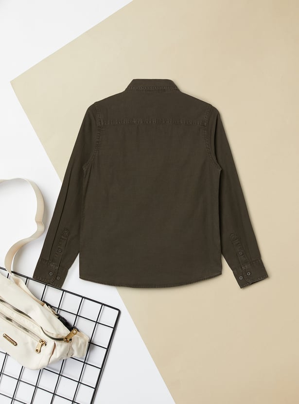 Effortlessly cool and versatile, this washed denim shirt features a spread collar, button placket, and full sleeves with button cuffs. Flap pockets add a utilitarian touch, while the washed finish gives it a rugged, laid-back vibe.