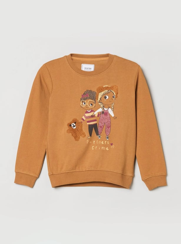 Girls Printed Round Neck Sweatshirt