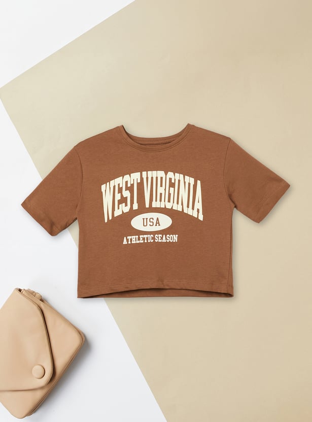 This printed T-shirt features a classic round neck and half sleeves, combining comfort with a fun, eye-catching design.