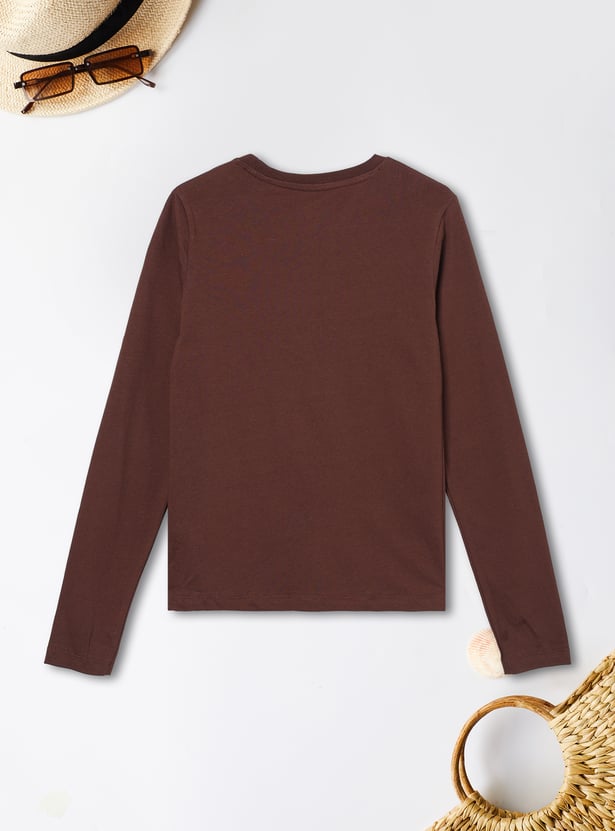 Add a stylish twist to your casual wardrobe with this printed t-shirt, featuring a classic round neck and full sleeves. The bold print brings a contemporary touch to everyday comfort.