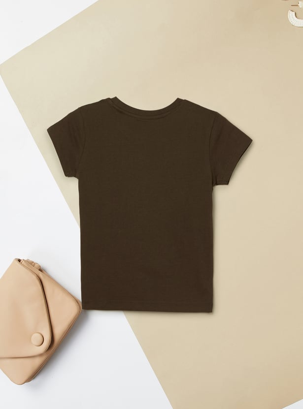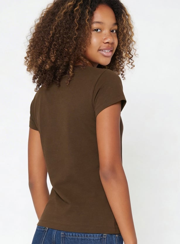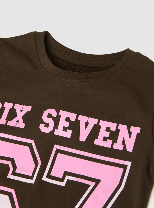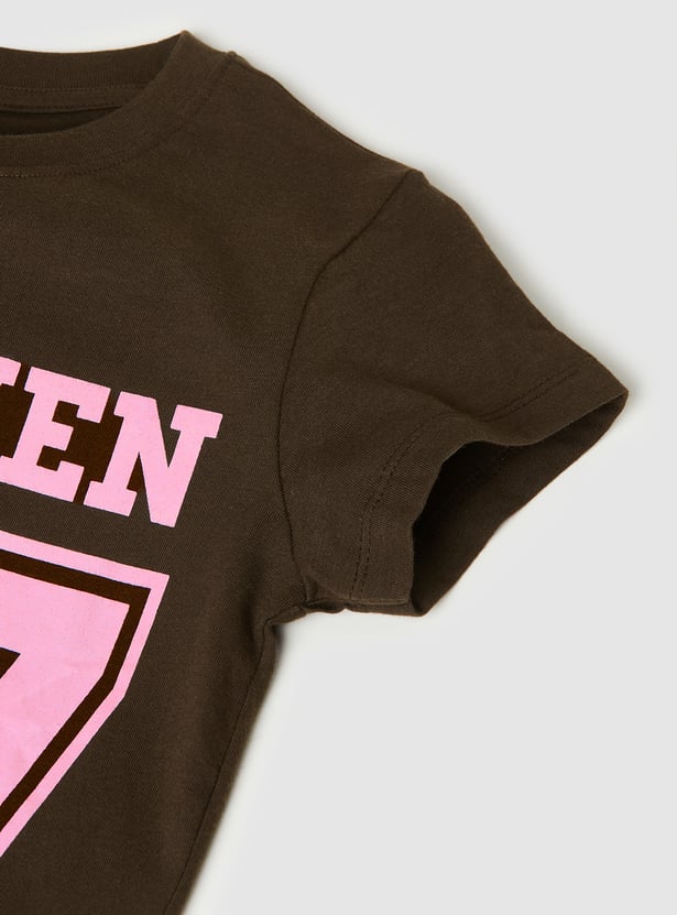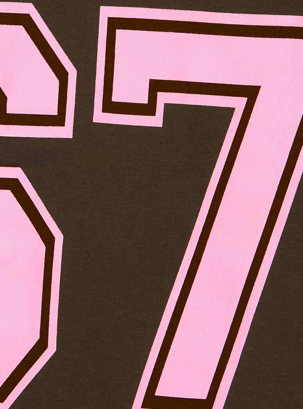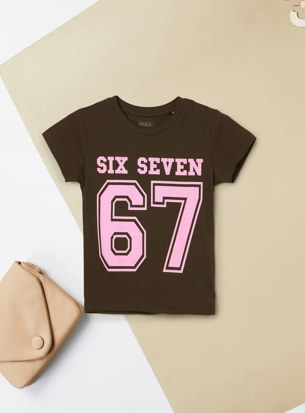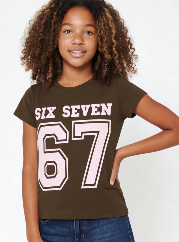 Add a quirky touch to her everyday wardrobe with this printed T-shirt. Designed with a round neck and half sleeves for comfortable wear, it features a “Size Seven” print for a fun, playful flair.