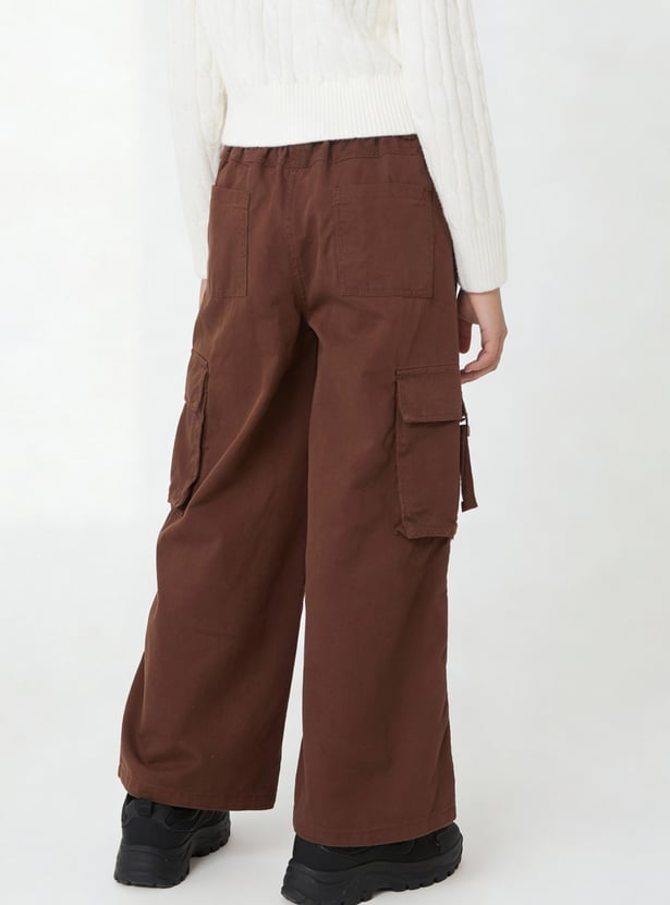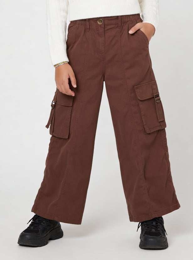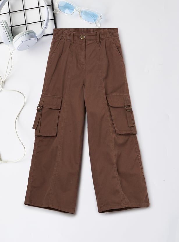 Girls Solid Cargo Trousers