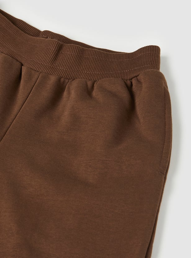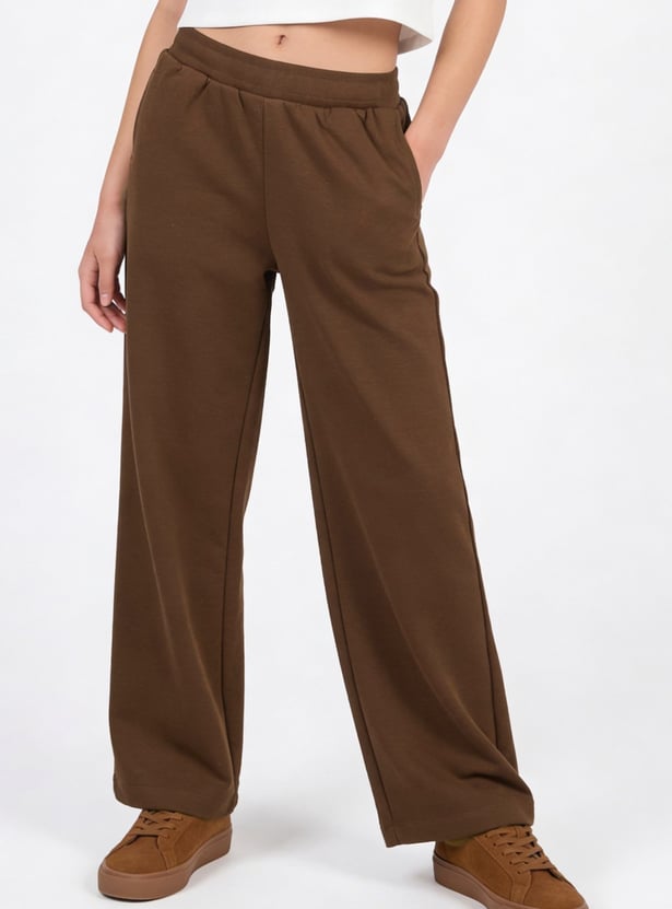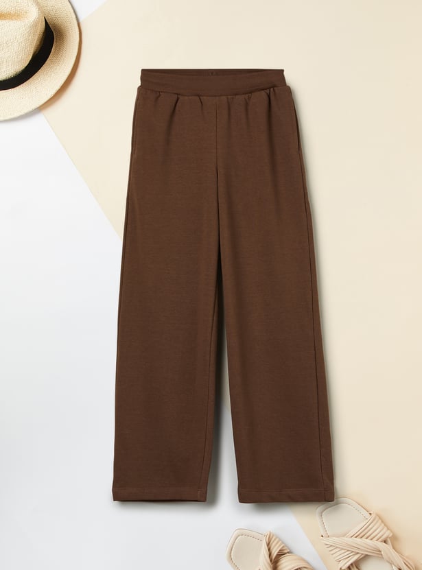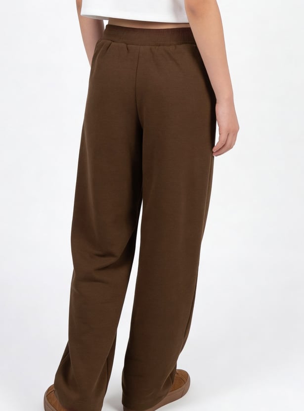 This pair of solid track pants features an elasticated waistband with wide-legs for a comfy fit with athletic performance.
