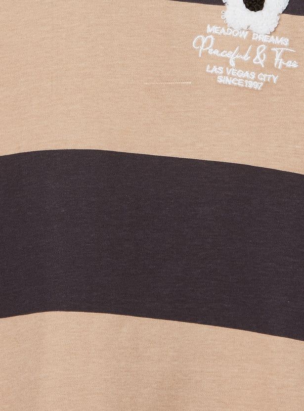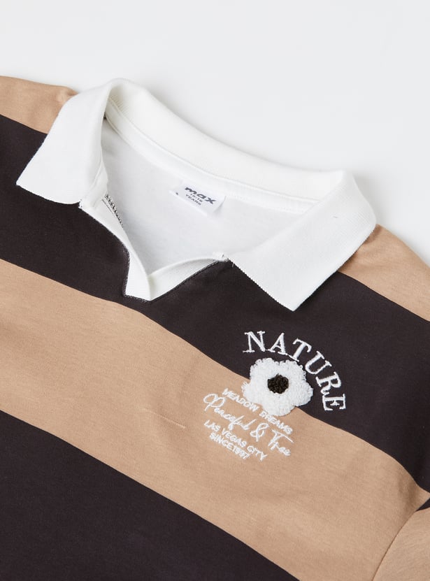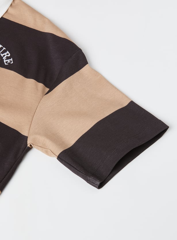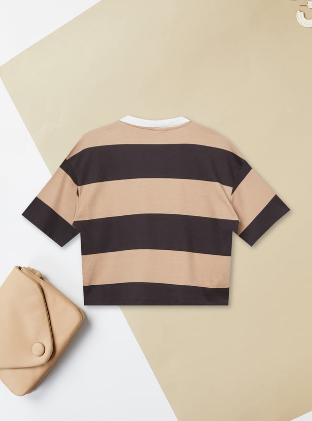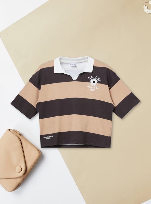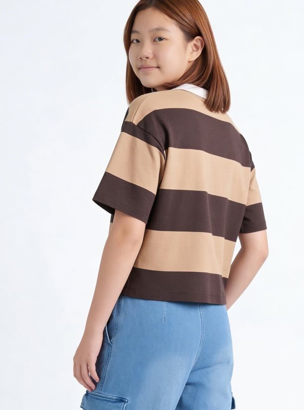 Girls Striped Johnny Collar T-shirt
