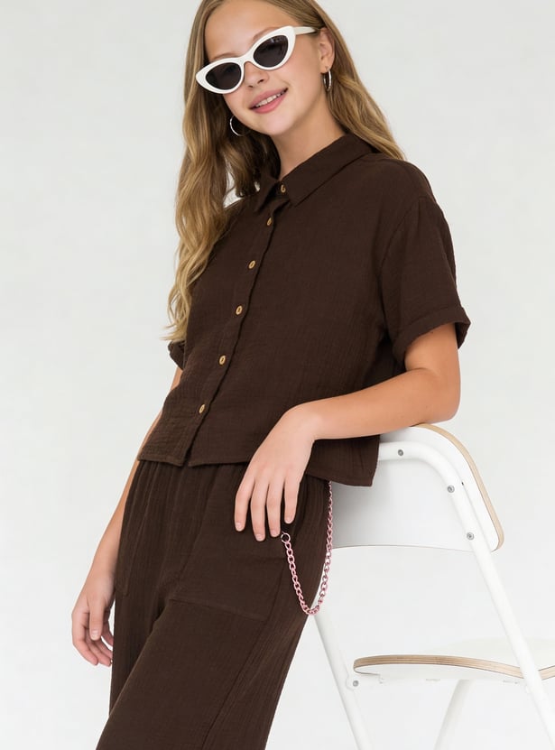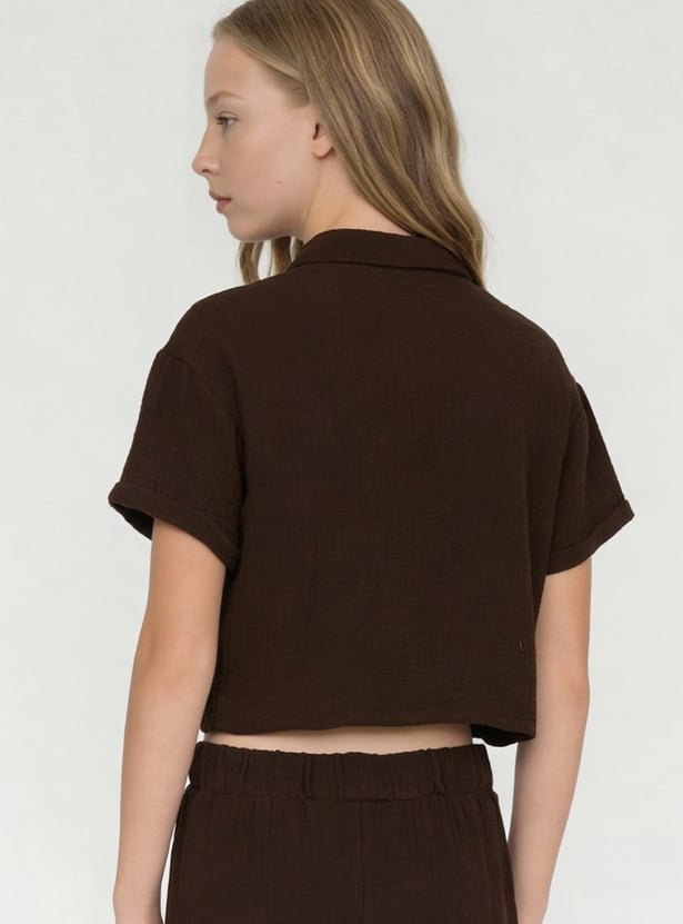 Lightweight texture meets timeless tailoring with this shirt. Featuring a spread collar, button closure, and half sleeves, it offers a breezy yet polished look.