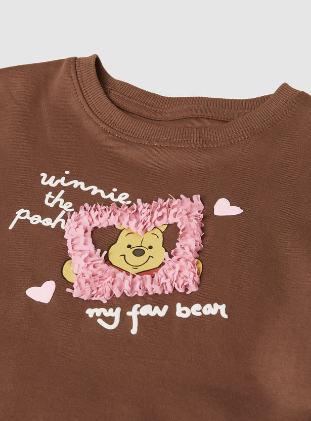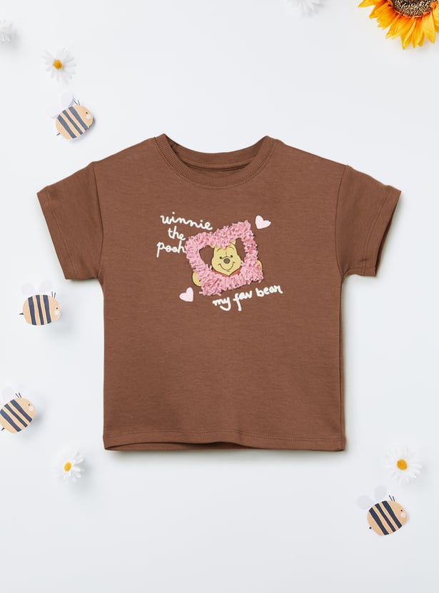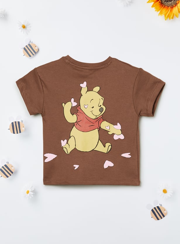 This Winnie the Pooh graphic printed T-shirt features a round neck, half sleeves, and a straight hem for everyday ease. Made from soft, breathable fabric, it offers a cozy feel and a playful charm to your little one's casual look.