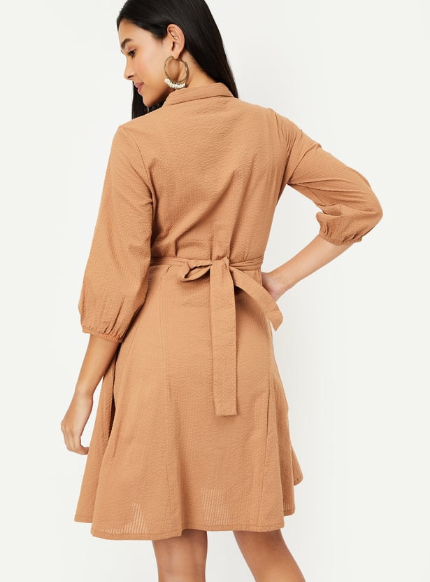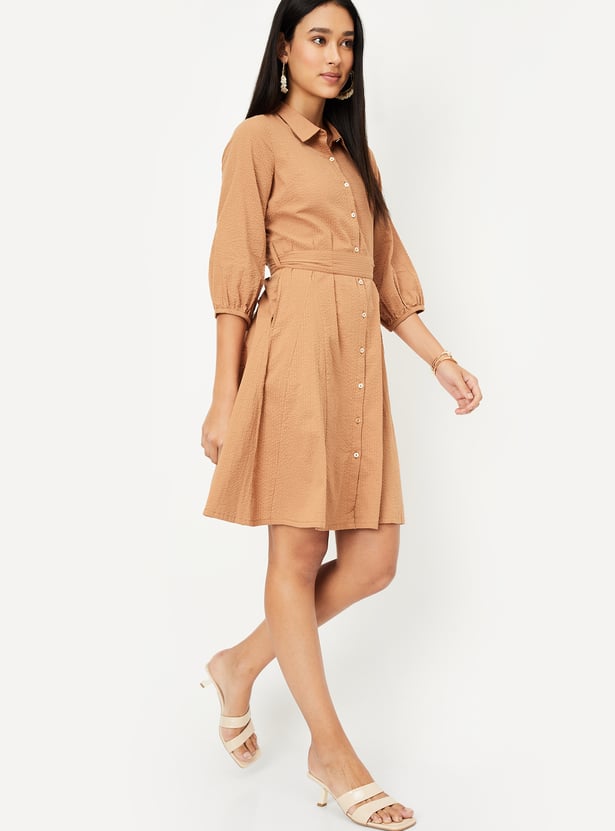 Kalki x Max Women Seersucker Belted Shirt Dress