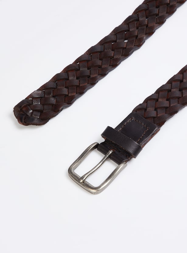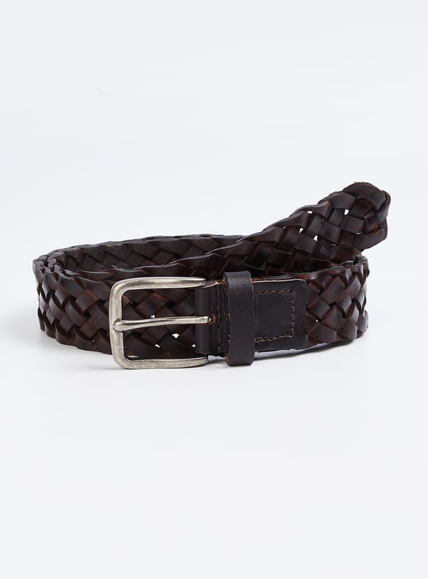This braided belt features a classic tang closure for an adjustable and secure fit. Its textured design brings a stylish flair to any outfit, making it a versatile wardrobe essential.