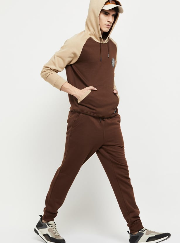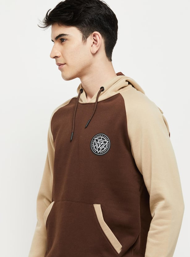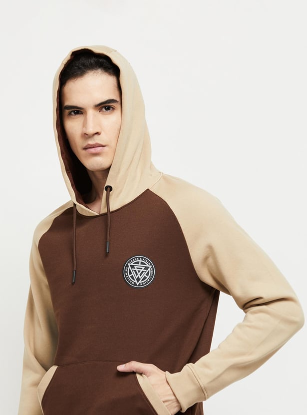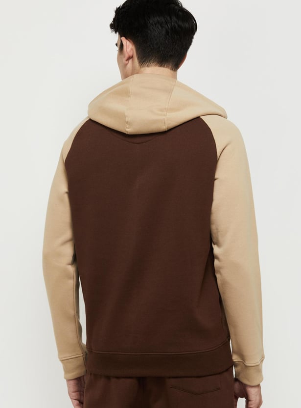 Men Colourblocked Hooded Pullover Sweatshirt