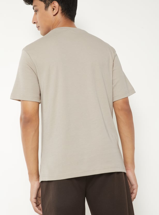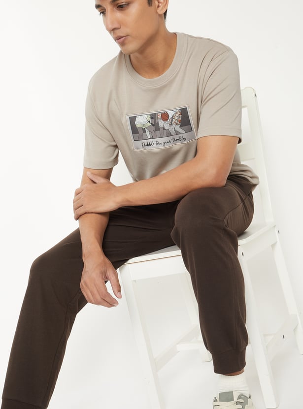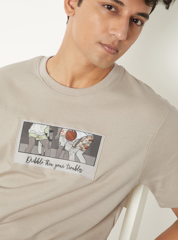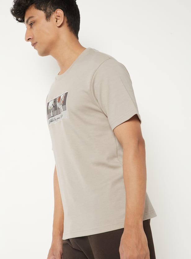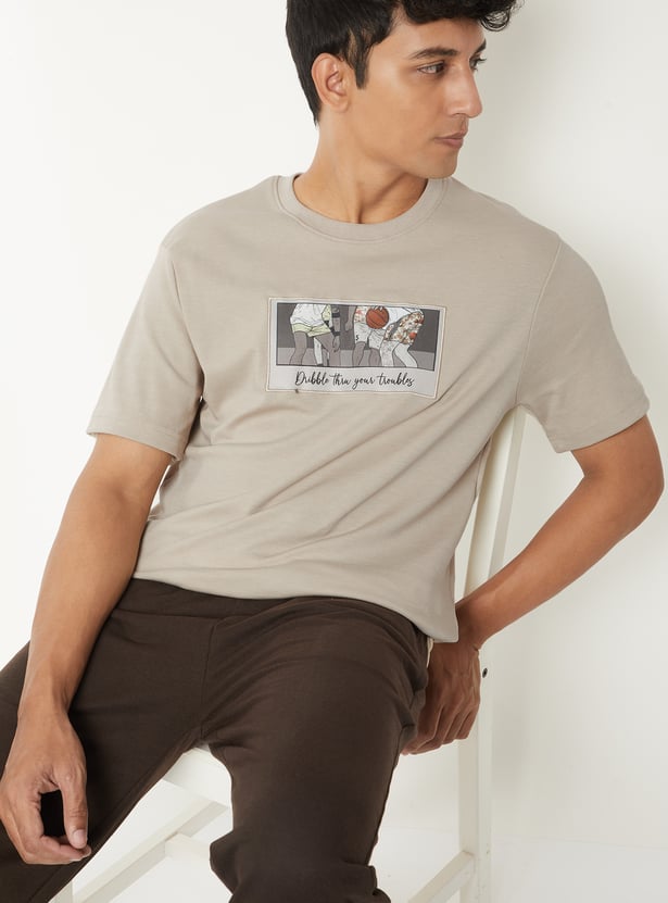 Make a statement with this T-shirt. Designed with a classic crew neck and comfortable half sleeves, it features a bold graphic print on the chest for a standout look.