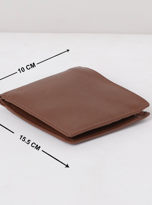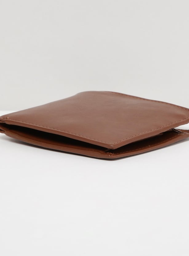 Make an impression with this wallet made of genuine leather. It has a bi-fold silhouette featuring a main bill compartment, a zip pocket, a coin pocket, and multiple card slots.