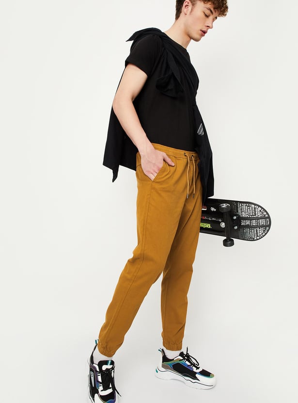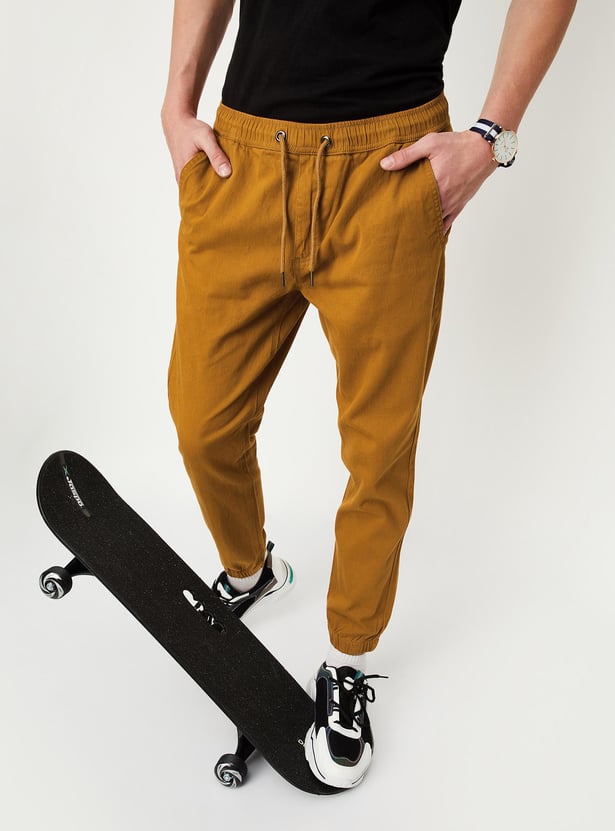 Nothing says comfort like this pair of joggers. It features a solid tone finish, a drawstring waist, side pockets, a back welt pocket, and cuffed hem. Team up this pair of pants with a tee and sneakers to look game ready.