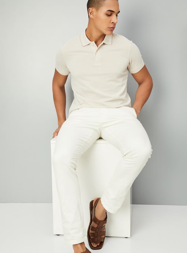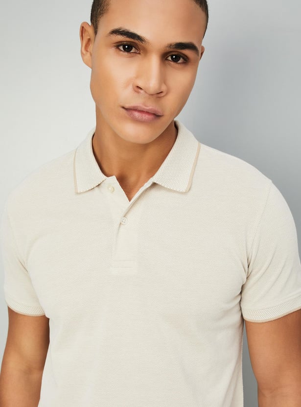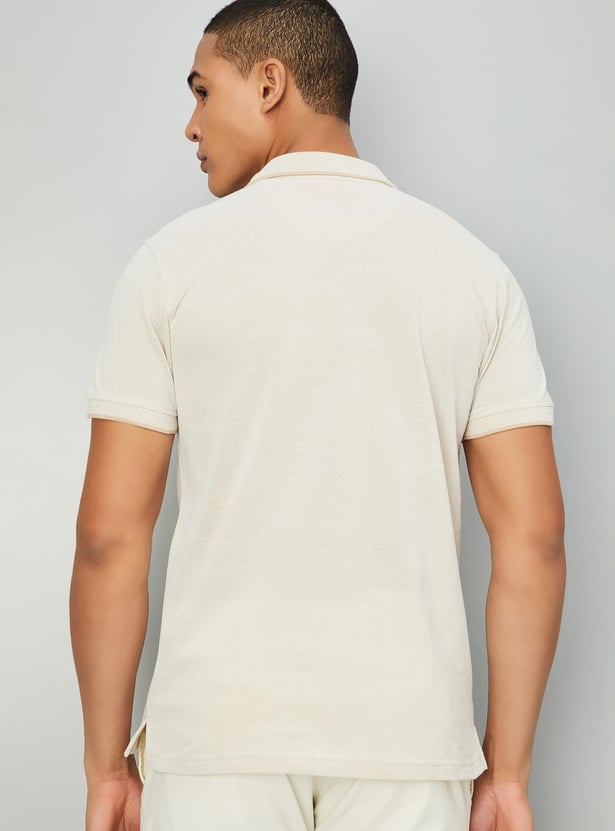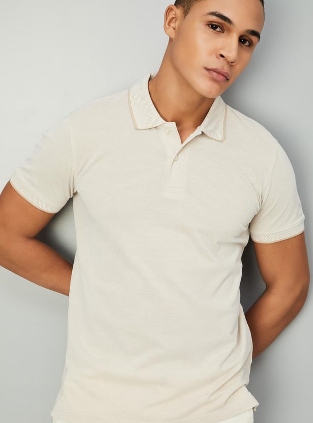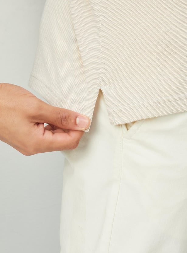 Upgrade your casual wardrobe with this polo T-shirt that features a classic polo collar, half sleeves, and vented hem to lend you comfort all day long. The solid surface adds a stylish flair to your overall look.