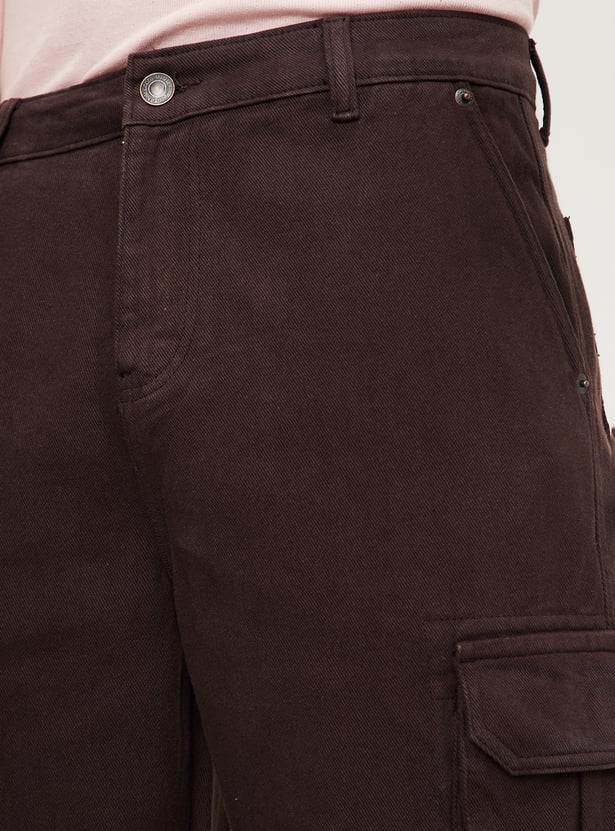 Men Solid Straight Fit Cargo Jeans
