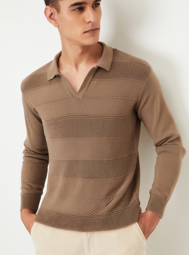 Step up your winter game with this sweater. Featuring a striped knit design, this pullover adds a touch of modern flair to your wardrobe. The Johnny collar provides a sophisticated look, while the ribbed trim at the cuffs and hem ensures a snug fit. Full sleeves provide extra warmth and comfort, making it an ideal choice for cooler days.