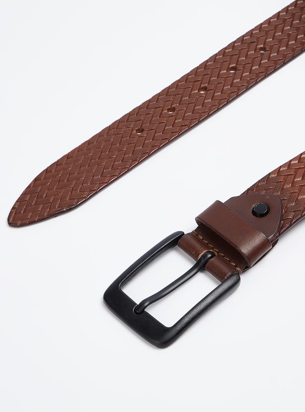 Elevate your casual collection with this elegant belt, crafted to fit every taste. Featuring a textured surface, punch holes, and tang buckle closure, it adds a touch of sophistication to any outfit.